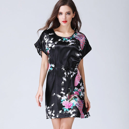 Women's V-Neck Pleated Knotted Silk-Satin Short Dress