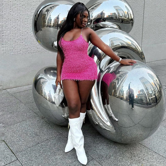 Sleeveless Backless Chain Bright Silk European And American Sling Dress