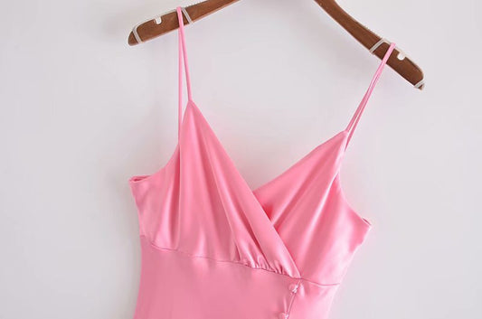 Silk Texture Suspenders Sexy Split Long Dress