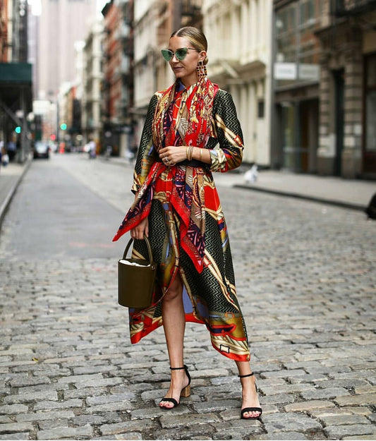 Silk Like Dress Printed Belly Covered