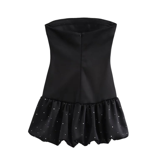 Women's Fashion Pleated Embellished Silk Satin Textured Dress