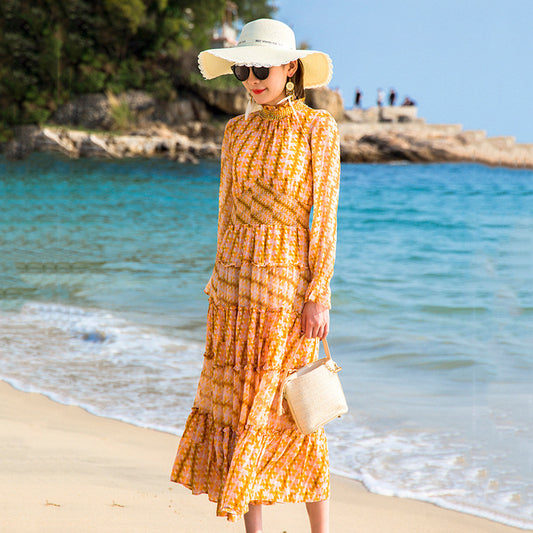 Silk Satin Irregular Skirt Long Sleeve Dress