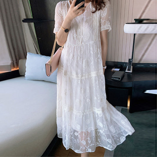Loose Milk Silk Women's Lace Stitching Dress