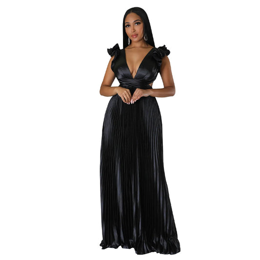 Dress Milk Silk Sexy Deep V Long-sleeved