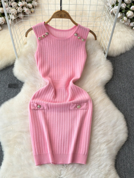 Elegant Inner Match Sleeveless Ice Silk Knitted Dress