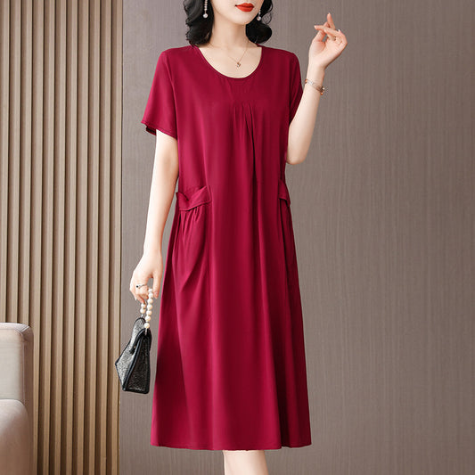Cool Imitation Ice Silk Mid-Length Mother'S Dress