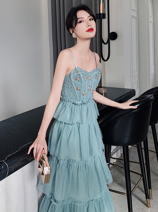 Bead Curtain Tassel Silk Flower Mid-length Improved Dress