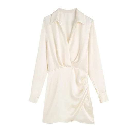 Women's Loading And Unloading Collar Pleated Silk Satin Texture Dress