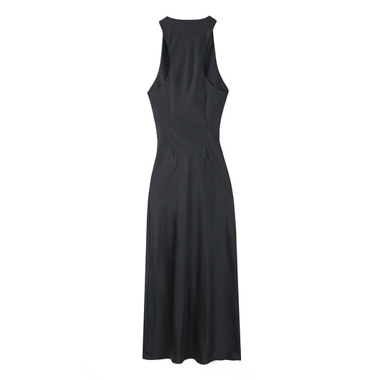 Women's Sleeveless Lace-Up Slim Silk Cloth Dress