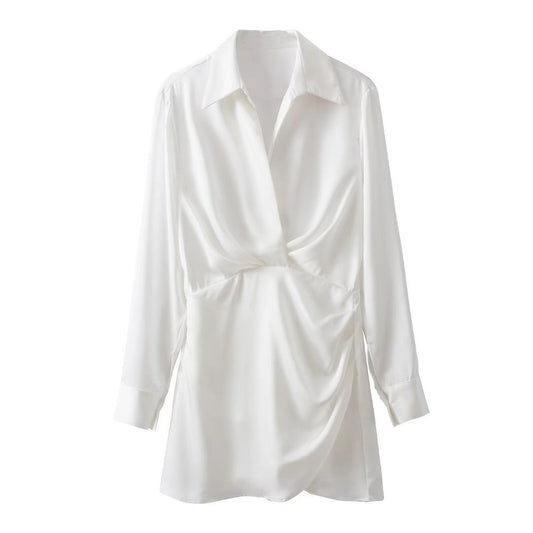 Women's Fashionable Temperament Pure Color Silk Satin Dress
