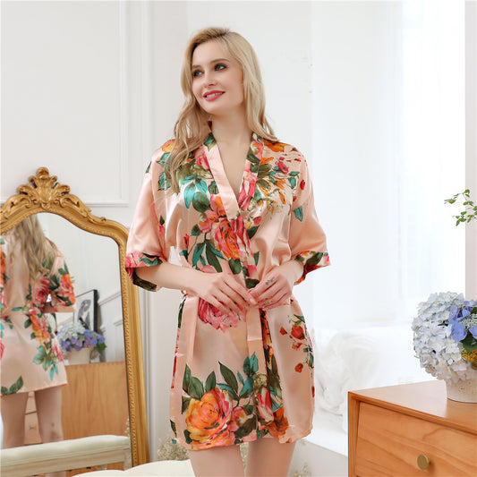 Imitated Silk Pajamas Women's Spring And Autumn Bathrobe Cool Ice Silk Home Wear Nightgown