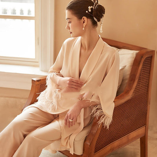 Ruoruo Ice Silk Pure Desire Slip Nightdress Outerwear Gown Suit