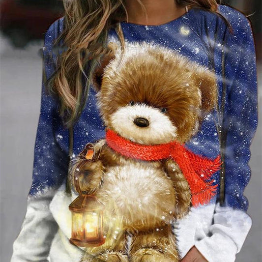 Women's Printed Long Sleeve Round Neck Casual Loose Sweater