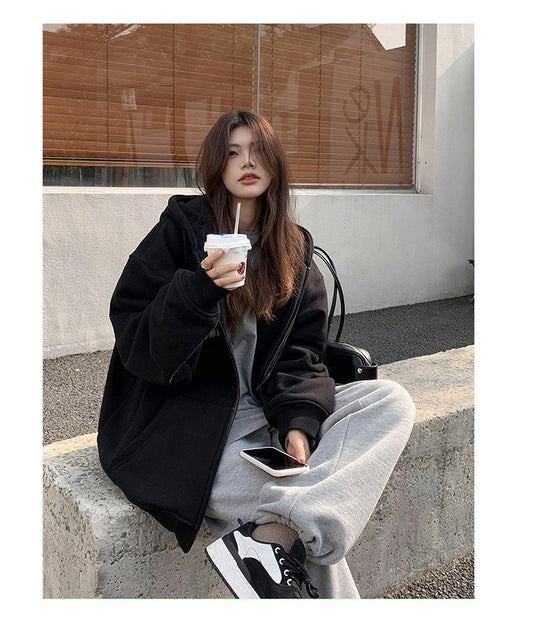 Cardigan Hooded Sweater Women's Thickened Plush Coat