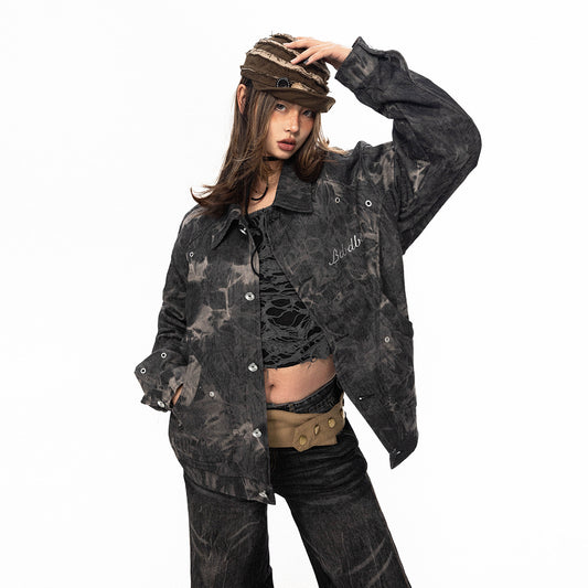 IndigoBloom Tie-Dyed Embroidered Denim Coat