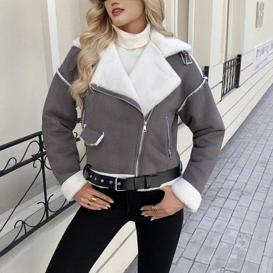 Zipped faux fur loose coat