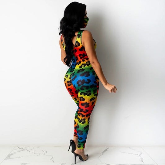 Printed Sleeveless Loose Milk Silk Suspender Jumpsuit