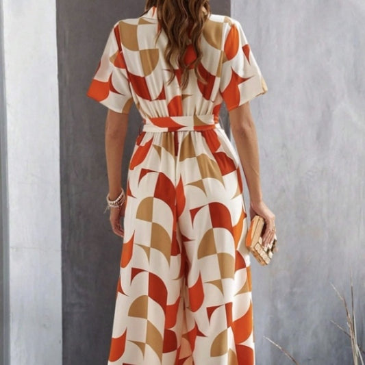 Women's Fashion Milk Silk Print Cutout Jumpsuit