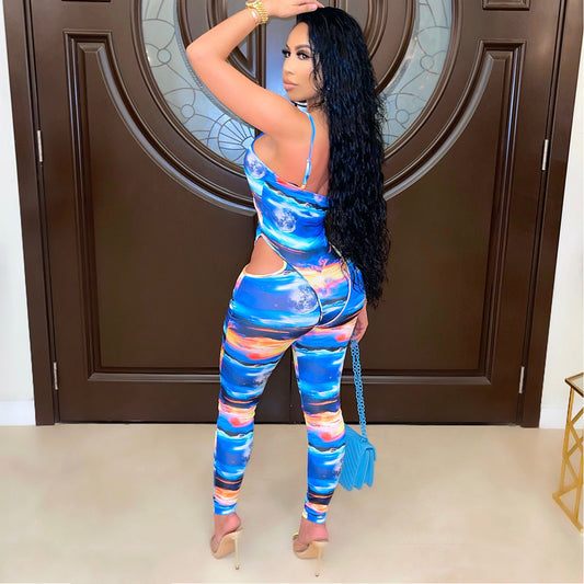 Milk Silk Printed Hollow-out Jumpsuit