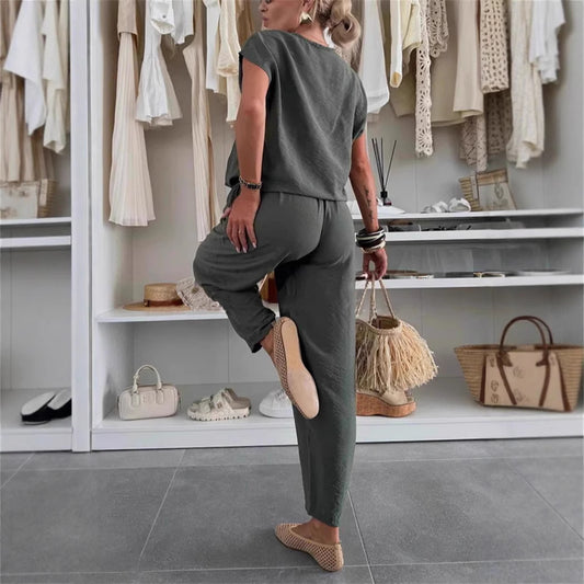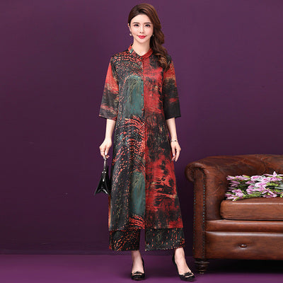 Casual Silk Long Sleeved Two-piece Shorts Set For Women