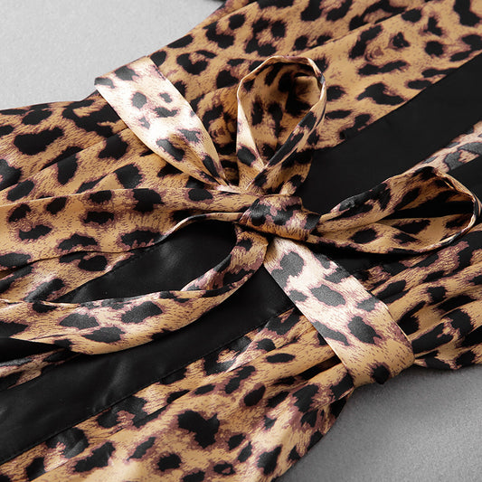 Ice silk leopard print pajamas set