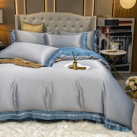 Ice Silk Bed Sheet Quilt Cover Advanced Simple Four-piece Set