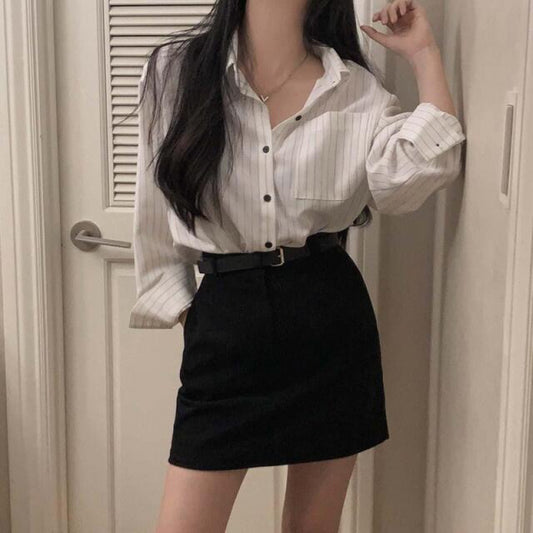 Korean Style High-grade Shirt Beveled Shoulder Off-shoulder Collar