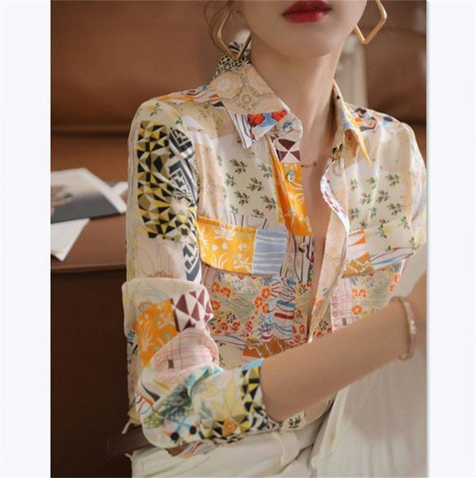 Women's All-match Casual Mulberry Silk Long-sleeved Shirt