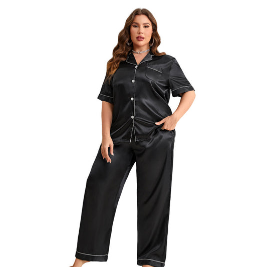 Summer Artificial Silk Plus Size Fashion Casual Shirt Pajamas Suit