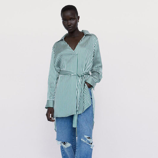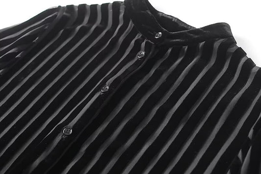 Striped Crepe De Chine Silk Shirt Stand Collar