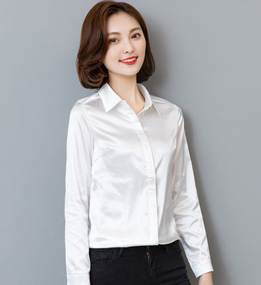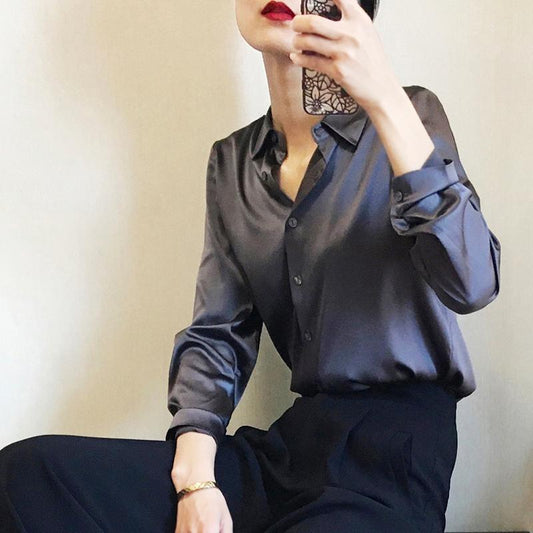 Satin Women's Satin Faux Silk Long-sleeved Shirt