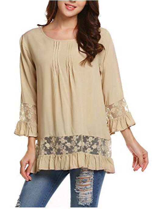 Silk Long Sleeve T-shirt Elegant Lace Embroid