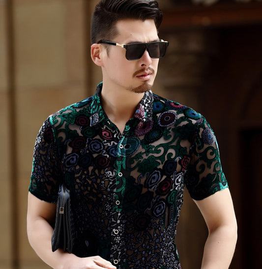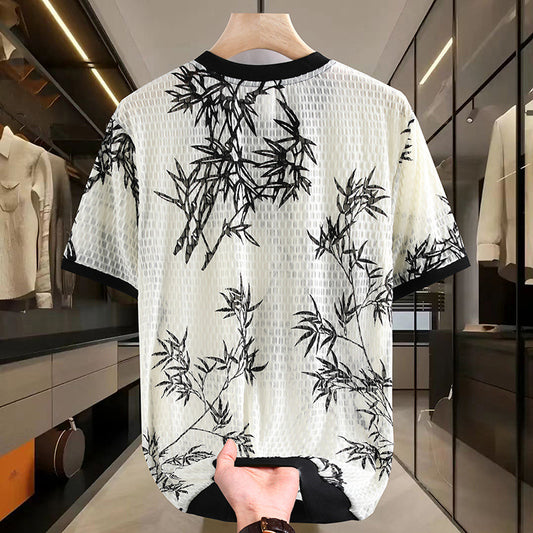 Summer Ice Silk Cut Mesh Short Sleeve T-shirt Men