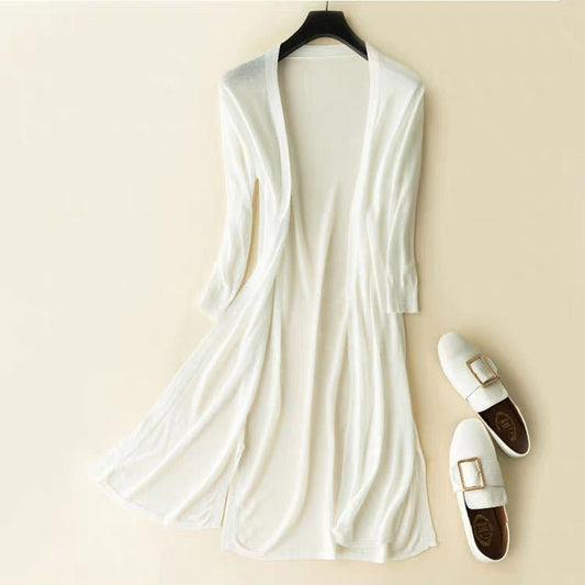Ice Silk Knitted Cardigan Women's Sun Protection Clothing Mid Length Shawl Coat