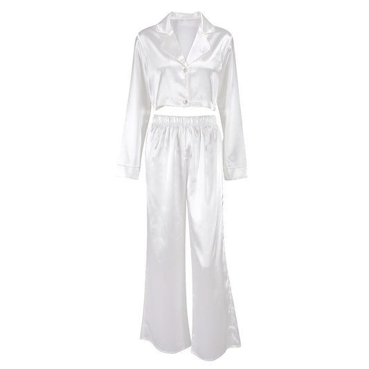 Ice Silk Pajama Suit White Casual Fashion