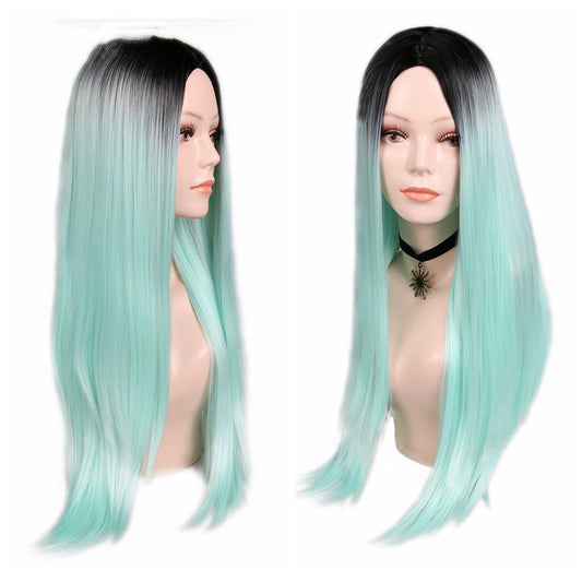 Gradient Color Straight Hair Piece High Temperature Silk Curly Hair