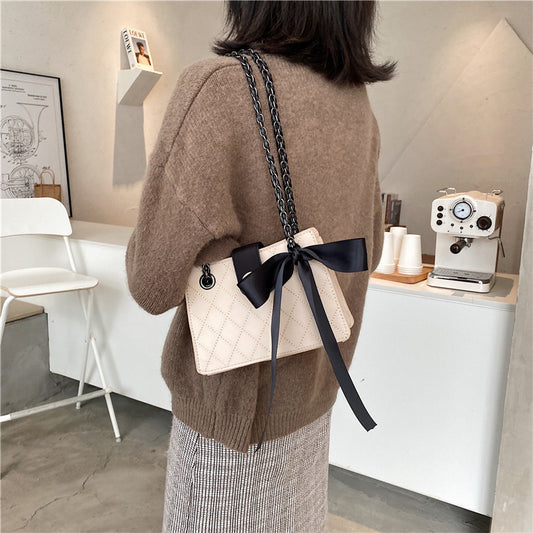 Fashion Silk Scarf One-Shoulder Diamond Chain Bag