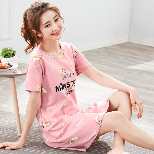 Cool Artificial Silk Nightdress Women's Short Sleeve
