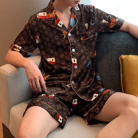 Summer Men's Pajamas Ice Silk Trousers Short Sleeve Suit