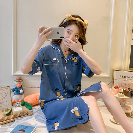 Summer Thin Short-Sleeved Ice Silk Pajamas