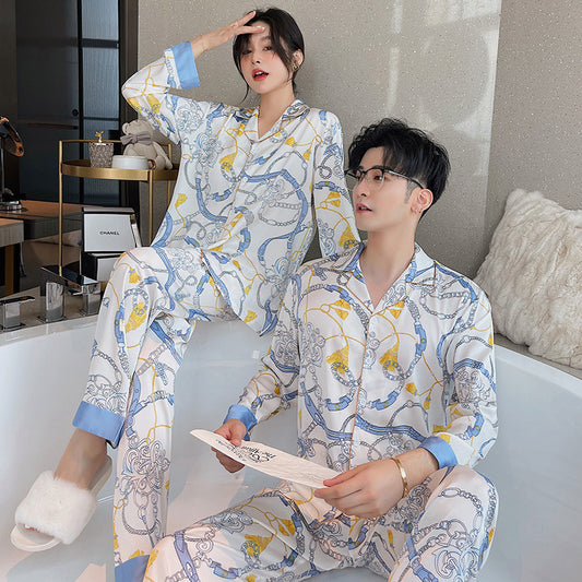 Spring And Autumn Ice Silk Pajamas Male Couple Pajamas