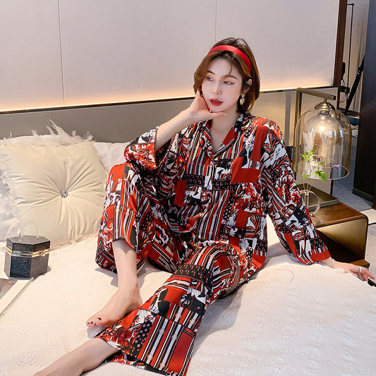 Women's Spring Autumn Long Sleeve Ice Silk Pajamas