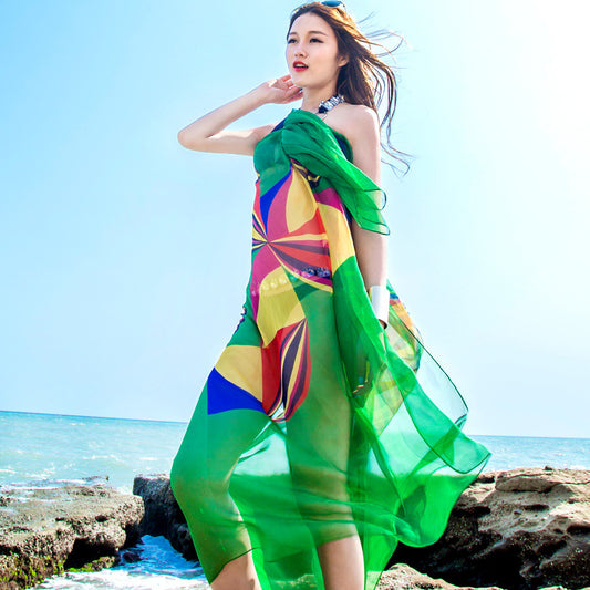 Silk Scarf Super Long Printed Scarf Sun Protection