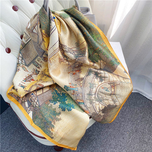 Silk Scarf Oil Painting Satin Square Scarf