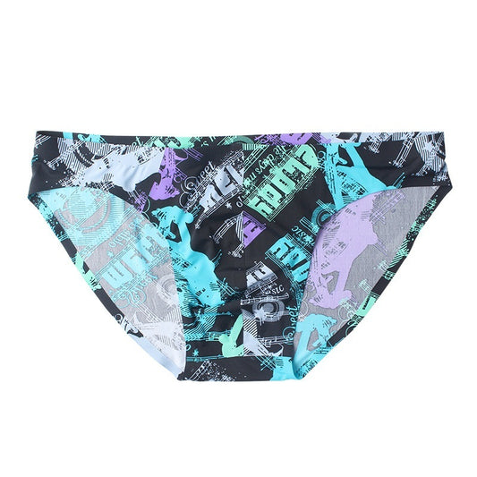 Seamless Ice Silk Men's Briefs Printed One-piece Underwear
