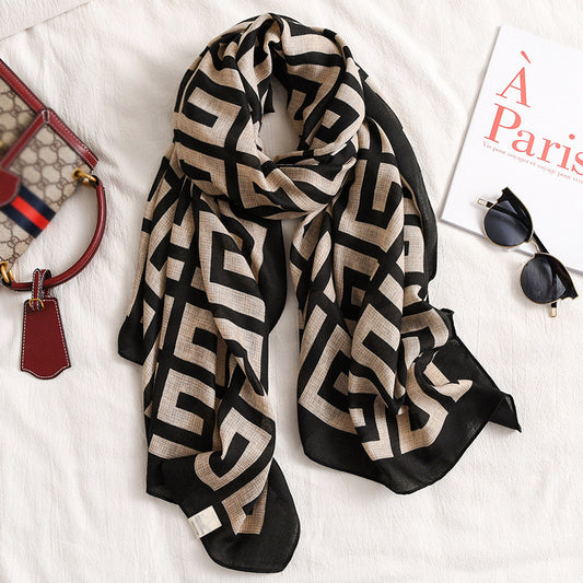 Printed Cotton And Linen Multifunctional Silk Scarf