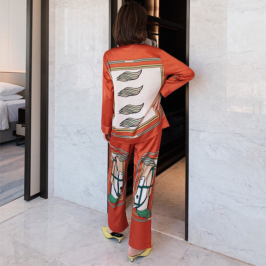 Pajamas Women Ice Silk Fashion Tide Brand Cardigan Casual Long-sleeved Home Service Suit Silk