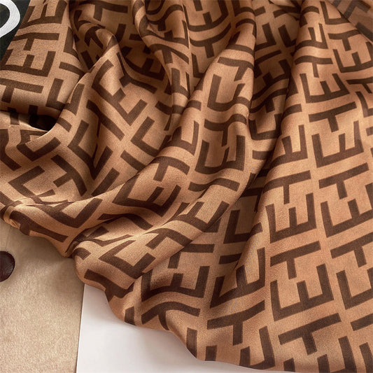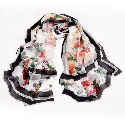 Outdoor All-match Printed Silk Scarf Women's Thin Silk Sunscreen And Breathable