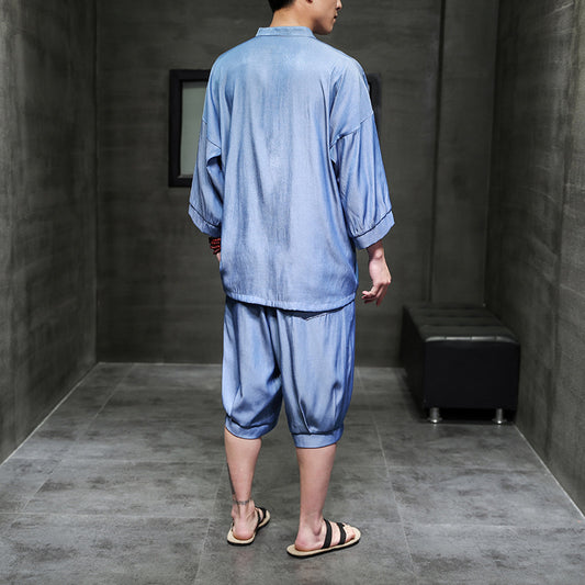 Large Size Ice Silk Pants Cropped Trousers Shorts