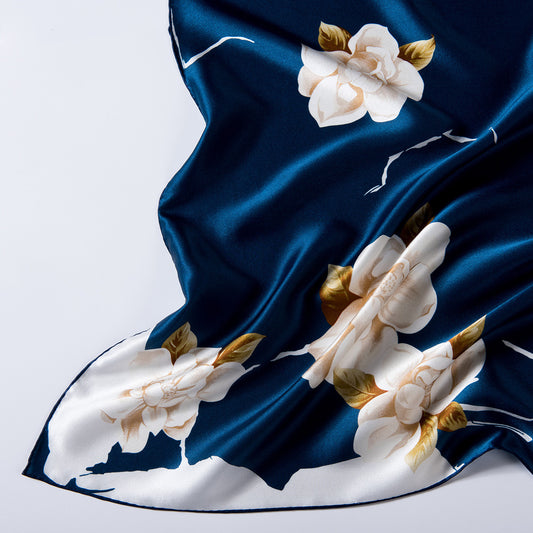 Imitation Silk Scarf Female Vine Flower Blue Print